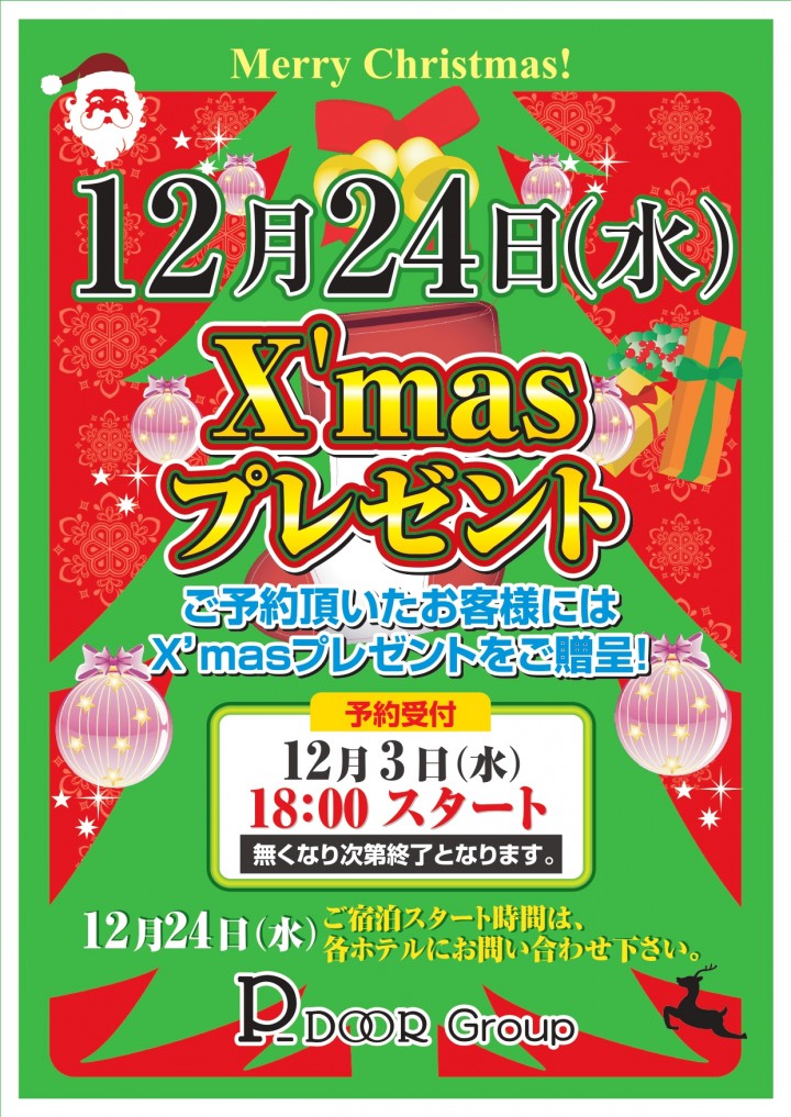 クリスマスの宿泊受付中★